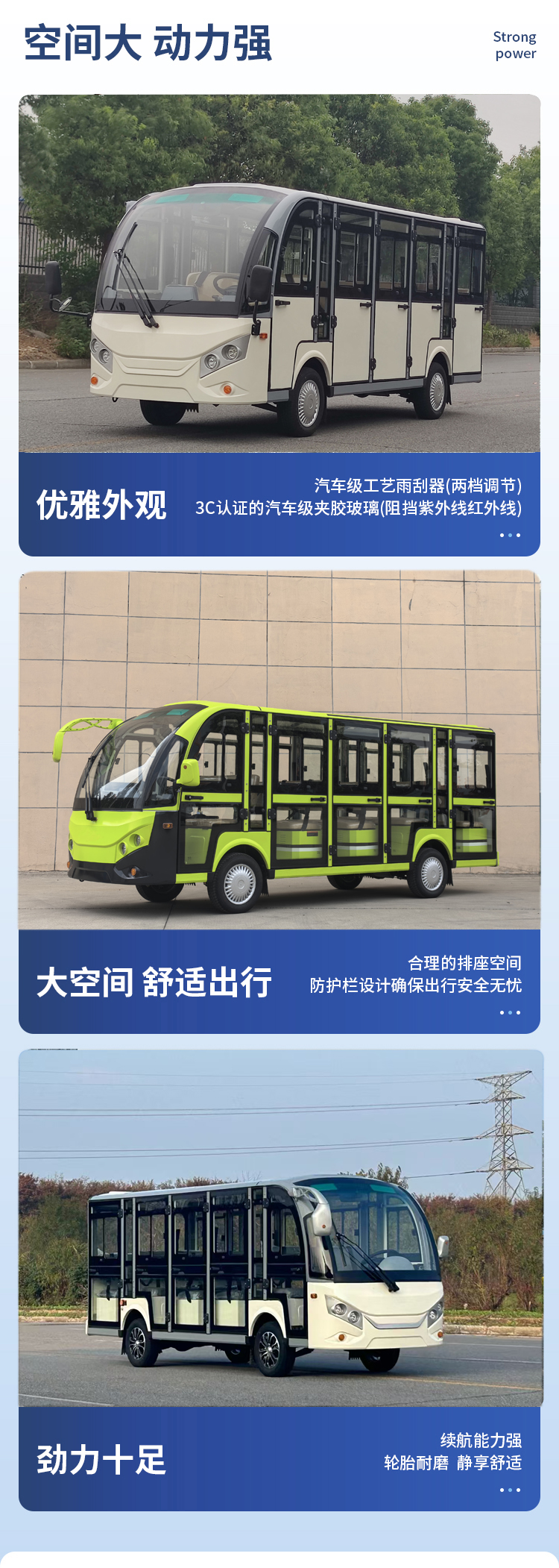 JLGD系列電動(dòng)觀光車不僅有簡(jiǎn)潔、大方、飽滿、美觀的外形設(shè)計(jì),還搭配米黃色的內(nèi)飾布置,外加皮革座椅及扶手,使得該車成為景區(qū)的亮點(diǎn)和宣傳名片。