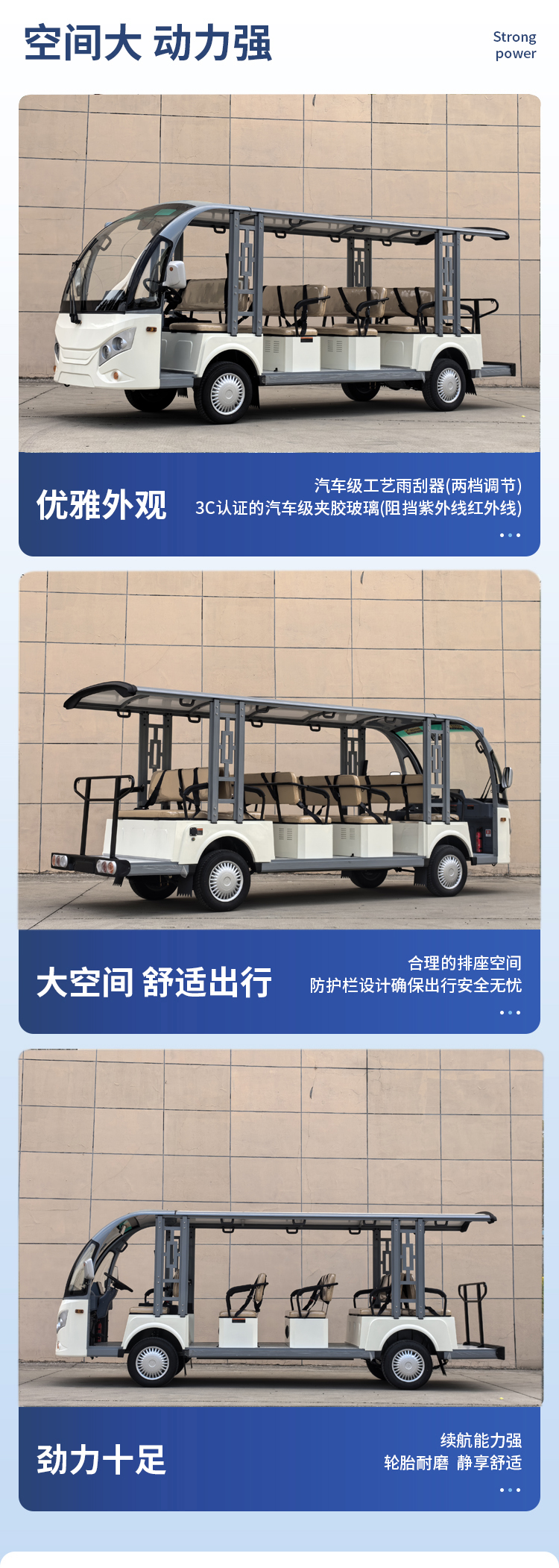 JLGD系列電動(dòng)觀光車不僅有簡(jiǎn)潔、大方、飽滿、美觀的外形設(shè)計(jì),還搭配米黃色的內(nèi)飾布置,外加皮革座椅及扶手,使得該車成為景區(qū)的亮點(diǎn)和宣傳名片。