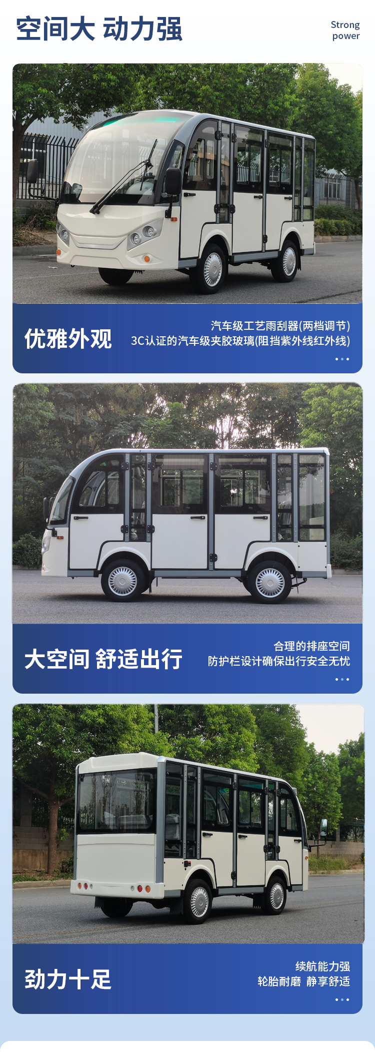 JLGD系列電動觀光車不僅有簡潔、大方、飽滿、美觀的外形設計,還搭配米黃色的內飾布置,外加皮革座椅及扶手,使得該車成為景區(qū)的亮點和宣傳名片。